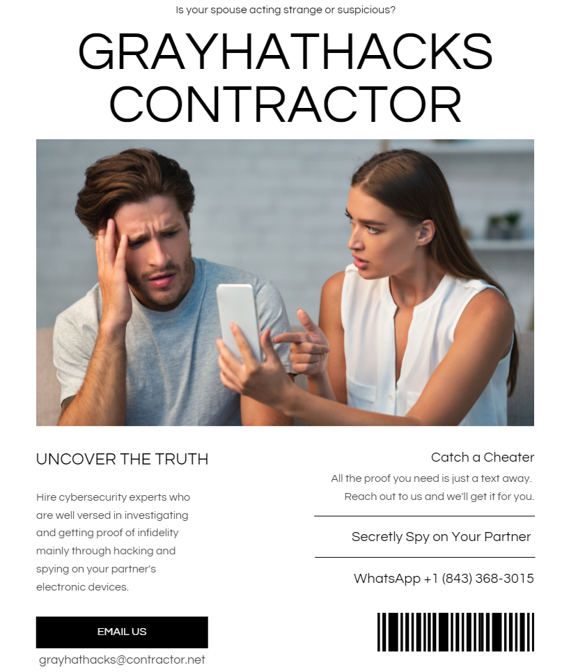 I had a gut feeling my husband was being unfaithful because of his recent behavior changes—staying out late, whispering on the phone, and asking for more space than usual. Desperate for answers, I approached GrayHat Hacks Contractor, a team of ethical hackers who specialize in catching cheating partners. They uncovered the hard truth for me: my husband was seeing multiple women, and one of them was someone I considered a good friend.