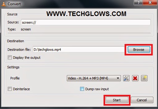 8.After that click on Start and VLC media player will start recording your Desktop screen.Then to save it click on Stop button.